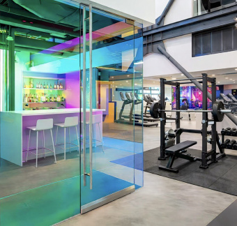 Одна з основних переваг декоративних плівок – поклейку можна виконувати після монтажу перегородок. Інсталяція плівки може бути як суцільним полотном на всю поверхню скла, так і частково. Наприклад: смуги, квадрати, хвилі й будь-який малюнок. Armolan Dichroic 50% Blue часто використовувана плівка для брендування офісів. Вирізання логотипів, індивідуальний дизайн – підкреслить імідж компанії.