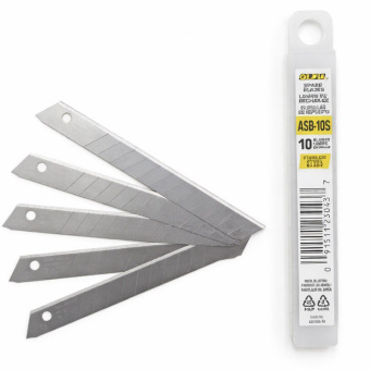 Леза Olfa SS (10шт) Розмір: 9х80 мм. З нержавіючої сталі, підходить під час роботи у вологому середовищі, де можливе виникнення корозії.