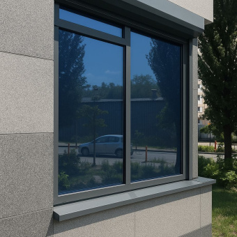 2. Зеркальная с улицы в дневное время суток, что позволяет создать конфиденциальность внутри помещения.